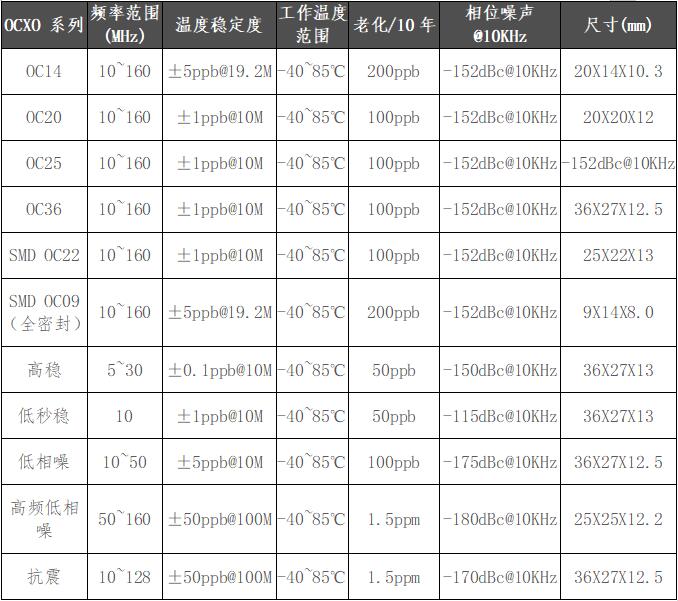 采用精密控温技术,使晶体谐振器工作在零温度系数点上,将环境温度变化对振荡器输出频率的影响降到最低,高精度产品频率温度稳定度在10-9量级以上。产品主要应用于各类通讯设备、测试设备、仪器仪表等领域。